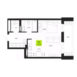 Продается 1-комн. квартира, 45,38 м²