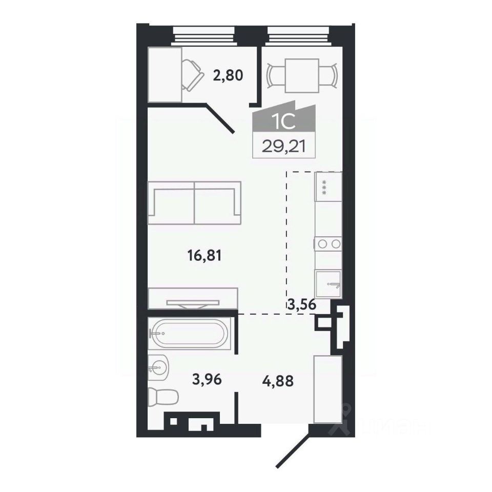 Общая площадь29,21 м²