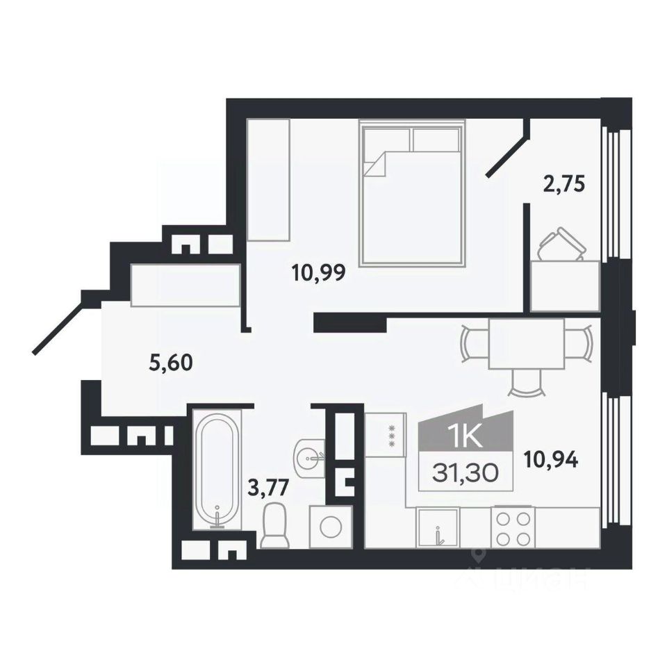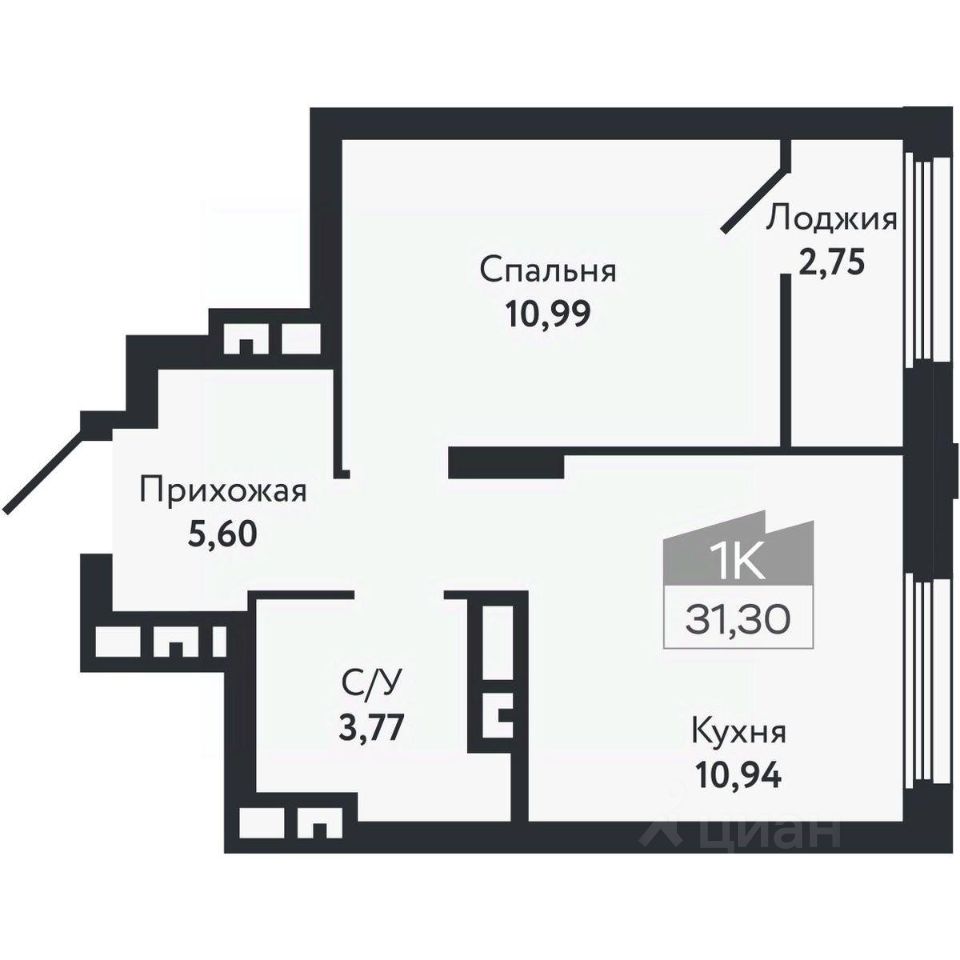 Общая площадь31,3 м²