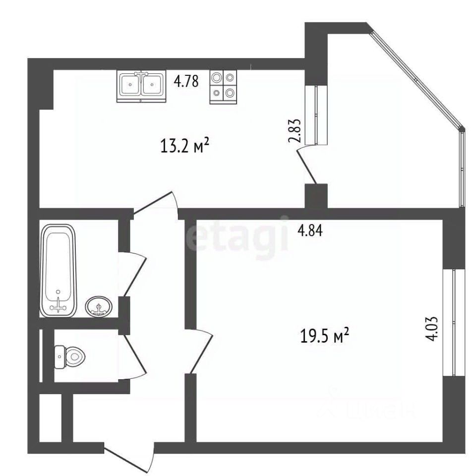 Вся площадь полезна и функциональна. Можно сделать евродвушку.