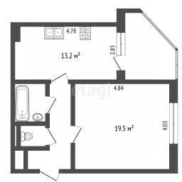 Классическая планировка с просторными комнатой и кухней.