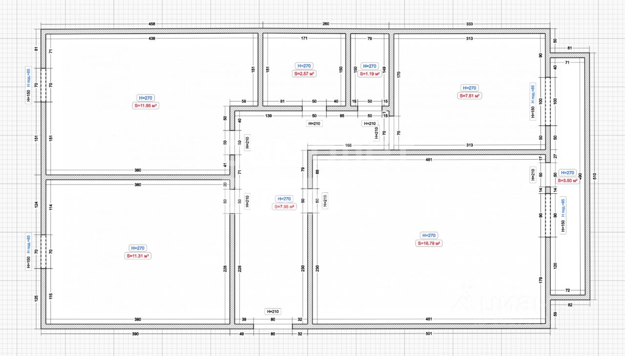 Высота потолков - 2,5м.