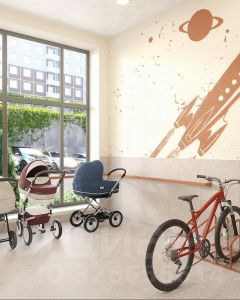 Безбарьерные входы, пандусы, 3 лифта/подъезд, места для хранения колясок/велосипедов, мойка лап у входа.