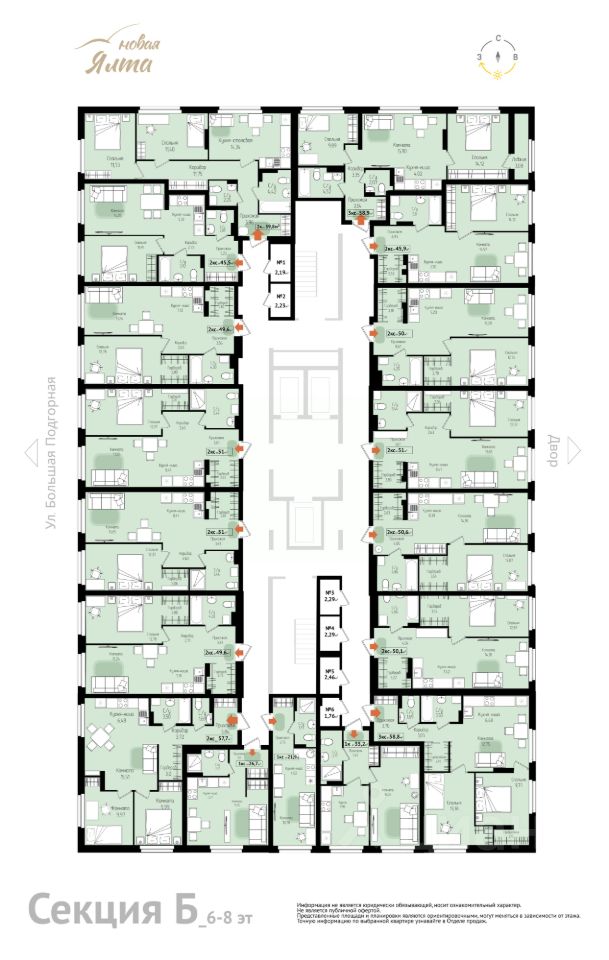 ЖК "НОВАЯ ЯЛТА" Место силы. Локация мечты. Формат будущего. Вдохновлено набережной Ялты и легендарной гостиницей "Интурист". В Томске в 5-и минутах от центра, по адресу Большая Подгорная 143а, 143б. Сдача - 2 кв. 2028 г. 2 корпуса: 16 и 23 этажа | 541 квартира (от 22 до 60 м²) | Участок - 2,1 Га Всё - с чётким графиком и полной прозрачностью (онлайн камеры хода строительства, эскроу счета, ДДУ). Для всех - доступное жильё с высокими стандартами: Детский сад на 80 мест - по КРТ проектирование . До группы - 3 минуты пешком. Безбарьерная среда: от улицы - до двери квартиры. Три грузопассажирских лифта. Колясочные, место для консьержа, просторные парадные с высотой потолка более 5 метров, кладовые на этажах (по 2 м² - сезонные вещи вне квартиры). Двор - атмосфера как у побережья моря: Солнечное пространство, морская тематика благоустройства - и территории отдыха для всех возрастов. Здесь снова модно гулять всем двором. Встречать друзей. Жить - по-настоящему. Первая линия - для вашего бизнеса с высоким трафиком: Ритейл-помещения на ул. Большая Подгорная - с отдельным входом, витражным остеклением, местом под вывеску. Кофейни, аптеки, фитнес, салоны, детские клубы - всё востребовано. Всё работает. "НОВАЯ ЯЛТА" — Это точка роста: для жизни, семьи, бизнеса. Переезжайте в ЖК "НОВАЯ ЯЛТА" будущее уже началось.
