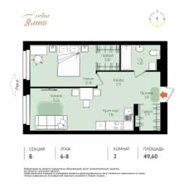 Общая площадь49,6 м²