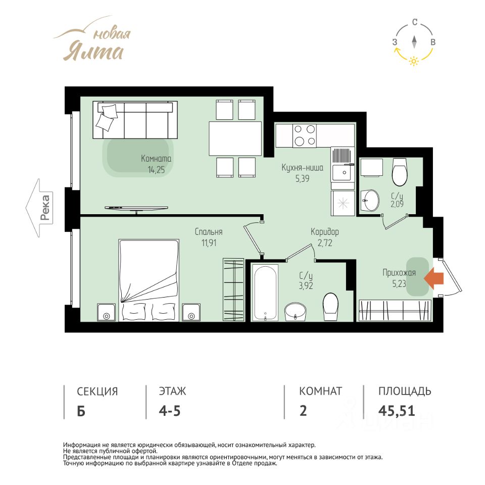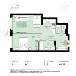 Общая площадь45,51 м²