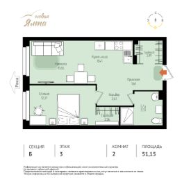 Общая площадь51,15 м²
