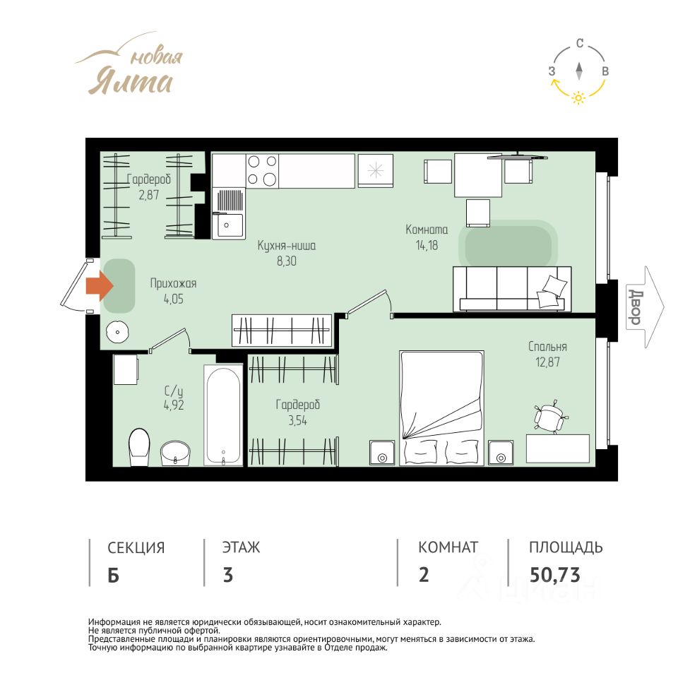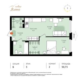 Общая площадь50,73 м²