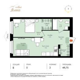 Общая площадь49,75 м²