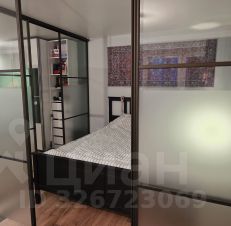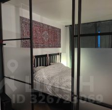 спальное место выделено раздвижными стеклянными перегородками.