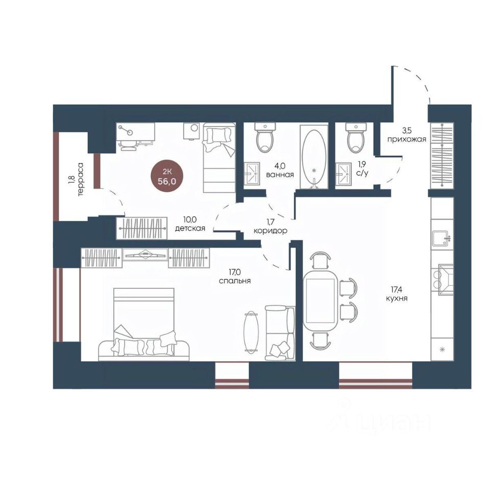 Общая площадь56 м²