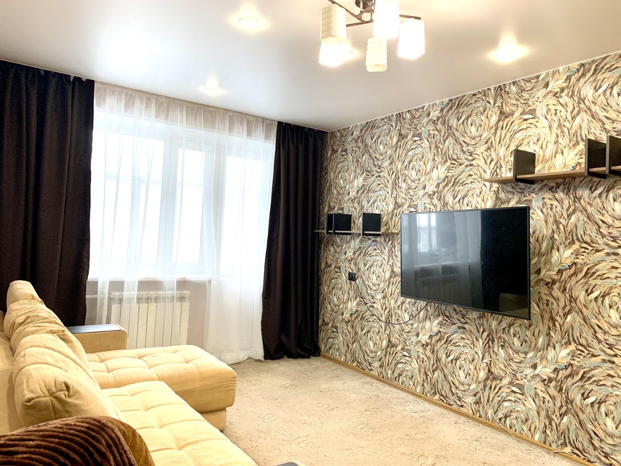 В квартире сделан качественный ремонт: натяжные потолки, плитка в ванной и санузле, межкомнатные двери, пластиковые окна. Заменена система отопления. Санузел раздельный, есть большая лоджия.