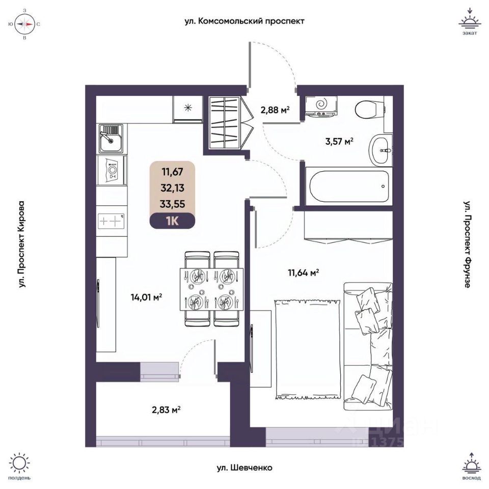 Общая площадь32,13 м²