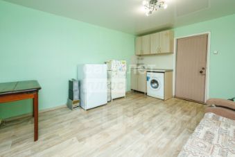При продаже остается из мебели и бытовой техники: кухонный гарнитур, стиральная машина, стол, холодильник.