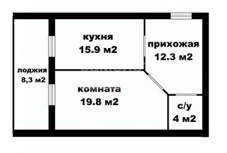1- комнатная квартира улучшенной планировки, современная евро-двухкомнатная, с комнатой площадью 19,8 м2, большой кухней 15, 9 м2 и просторной прихожей 12,3 м2.
