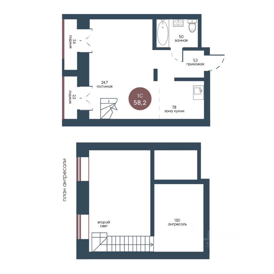 Продаётся студия в сданном доме (Корпус 4), срок сдачи: IV-кв. 2025, общей площадью 58.2 кв.м., на 1 этаже.