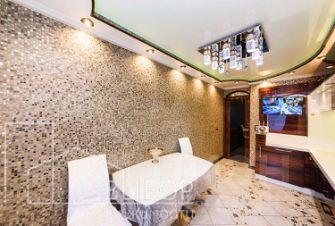 - Интерьер продуман до мелочей: стены отделаны роскошными бархатными обоями. Ламинат и керамогранит на полу придают квартире благородства и долговечности. Натяжные потолки с встроенными итальянскими светильниками подчеркивают стиль пространства. Все элементы мебели также производство Италии. Кожаный диван с выдвижными креслами будет оставлен по договорной цене. Кухонный гарнитур оснащен современными газлифтами и красивой каменной столешницей. Отделка стен выполнена керамической мозаикой, придавая кухне неповторимый шарм. Вся необходимая бытовая техника, включая посудомоечную машину, холодильник, электроплиту, вытяжку, жаровочный шкаф, микроволновую печь и стиральную машину, остается. В 2-х комнатах спальные гарнитуры. В квартире 4 шкафа купе. Безопасность ваших ценностей обеспечат 2 сейфа. Ванная комната оснащена джакузи, удобной инсталляцией санузла и отделана также керамической мозаикой.