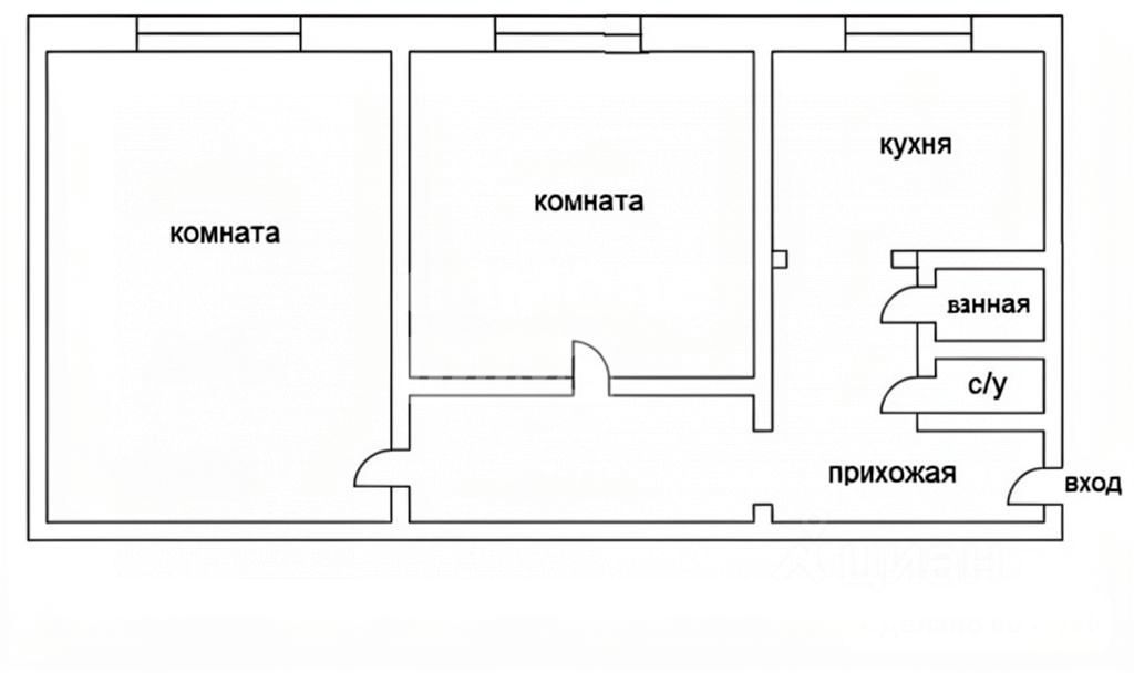 1 Комната - 17 м, 2 Комната - 12 м, Кухня - 6 м