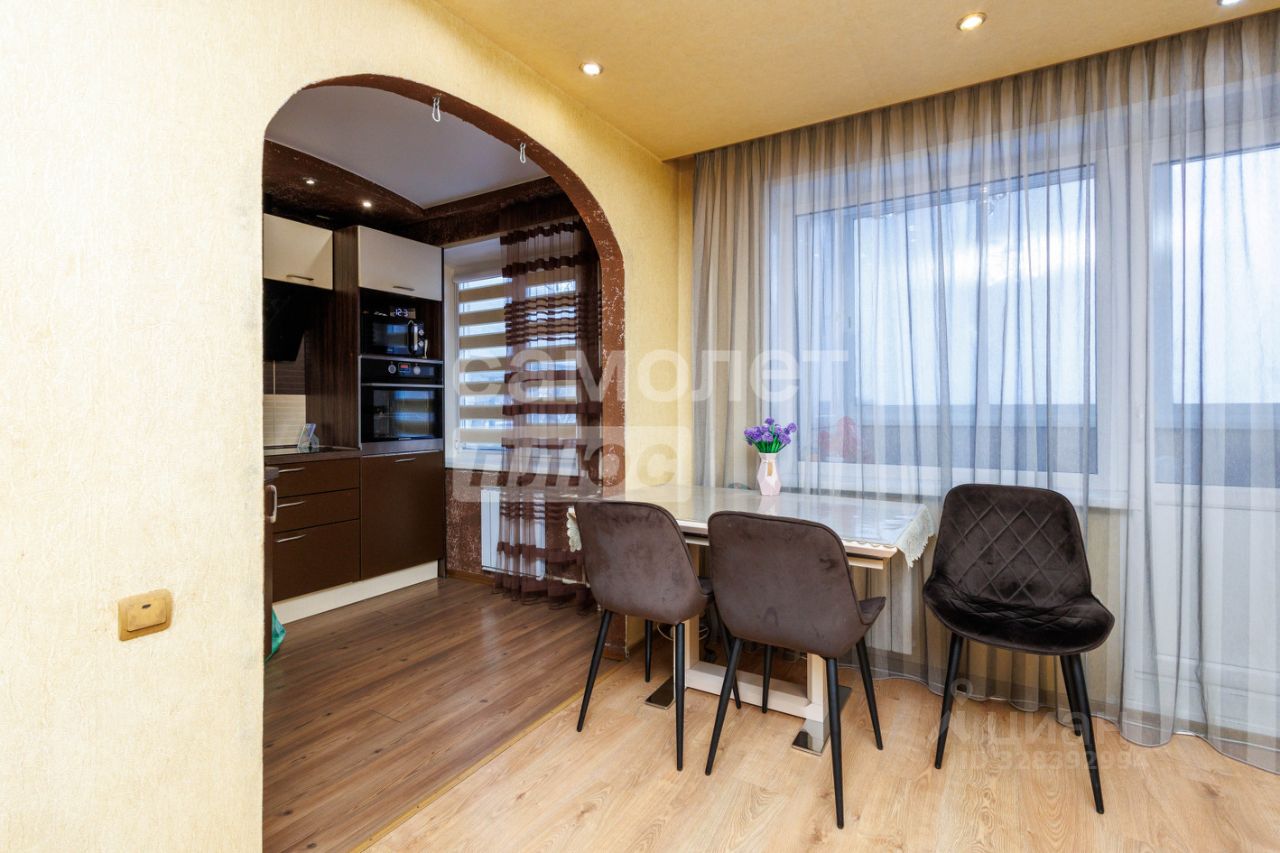 Общая площадь квартиры составляет 44 кв.м. + застекленный балкон с удобным встроенным шкафом для хранения. Жилая площадь - 31кв.м (17,1+13,9). Кухня площадью 5,5 кв.м. удобно объединена с комнатой, создавая современное и функциональное пространство, что визуально увеличивает площадь. На кухне установлен кухонный гарнитур со встроенной техникой и посудомоечной машиной.