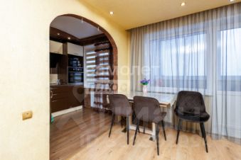 В квартире выполнен качественный ремонт с использованием современных материалов. В комнатах и на кухне на полу ламинат, в прихожей линолеум. Потолки выровнены, в спальне установлен натяжной потолок. Окна оборудованы стильными рулонными шторами.