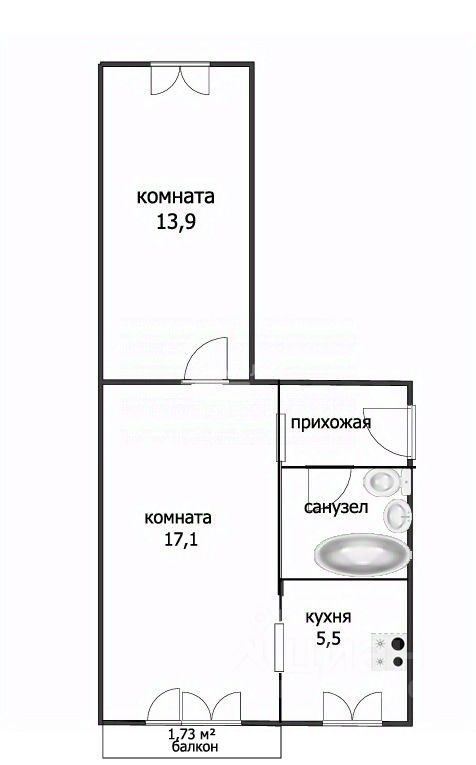 2-комнатная квартира "распашонка"