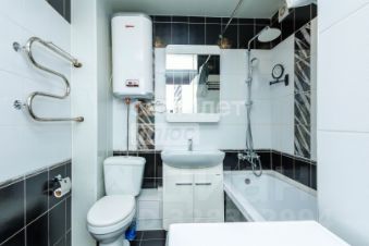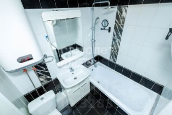 Просторный совмещенный санузел отделан стильным современным кафелем и оснащен новой сантехникой. В спальне установлена шведская гардеробная система Elfa, позволяющая оптимально организовать пространство для хранения вещей (все элементы системы легко можно переставить и поменять местами в зависимости от ваших потребностей).