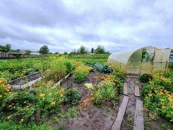 Участок: 12 соток земли, достаточно места для огорода, сада и отдыха.