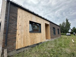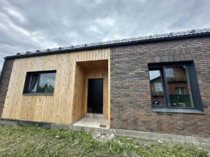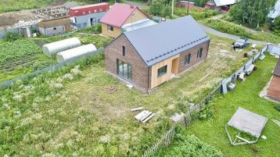 Продам дом на Степановке в черновой отделке. Очень удобная планировка: 3 спальни, большая кухня-гостиная, гардеробная, котельная, сан. узел. В кухне- гостиной большие панорамные окна и высокие потолки 5 м. Конструкция стен дома: сибит, пенопласт 5 см, облицовочный кирпич ликолор 12 см (цвет флеш). Фундамент - монолитная плита 30 см. Окна пятикамерные. Вода - скважина, в дом заведена. Электричество заведено в дом. Газ на границе. Установлен септик. Участок ровный правильной прямоугольной формы. Остановка общественного транспорта в 2х минутах пешком. На участке есть возможность постройки гаража, бани, веранды (место позволяет). Удобный подъезд к участку. На фото представлен вариант дизайна гостиной.