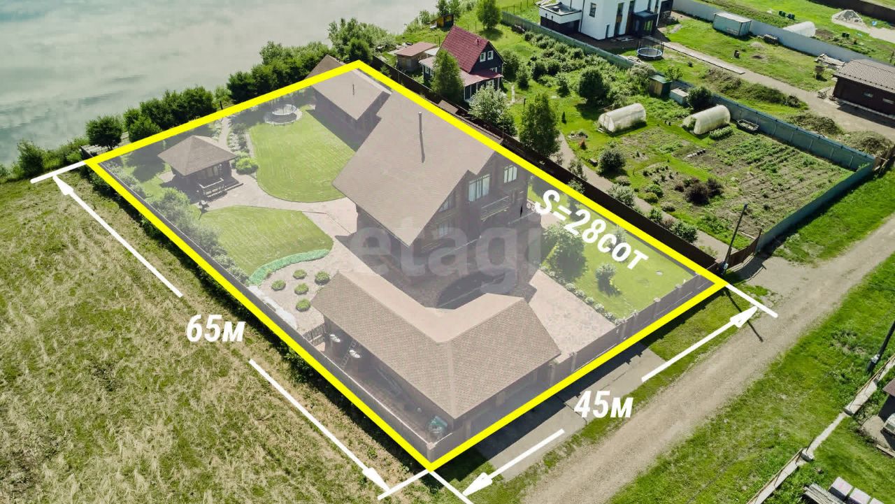 Участок площадью 28 соток полностью благоустроен: дорожки из натурального камня, ухоженный газон с автоматическим поливом и системой отвода воды, детская спортивная площадка, место под батут и каркасный уличный бассейн. Автоматические ворота. Вдоль высокого берега высажены красивые лиственницы, украшающие и без того удивительной красоты вид на реку.