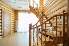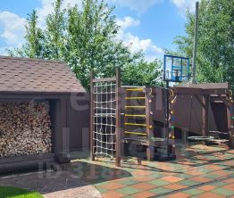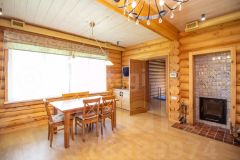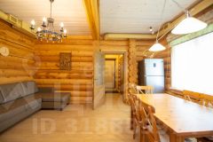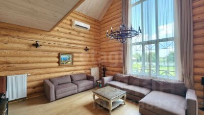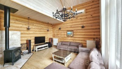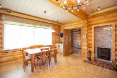 Выполнен из редкого оцилиндрованного бревна (сосна) диаметром 32 см в стиле "русского модерна". Он не только выглядит эффектно, но и обеспечивает тепло и уют. На первом этаже находятся просторная гостиная с камином от La Nordica (Италия), современная кухня с итальянским гарнитуром Aran, гостевая спальня и туалетная комната с душевой. На втором этаже расположены три спальни, туалетная комната с отдельно стоящей ванной и просторной душевой кабиной. Третий этаж - большая комната свободного назначения. Вся мебель в стиле "Прованс" остается новым собственникам.
