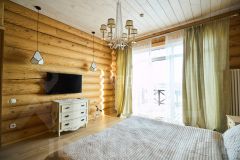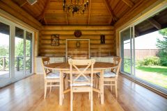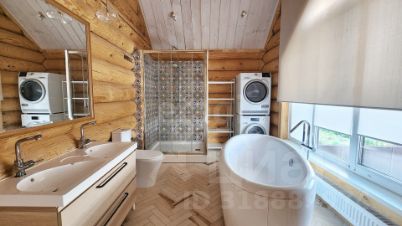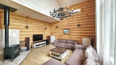 - Главный дом (435,8 м²): Выполнен из редкого бревна (сосна 32 см) в стиле "русского модерна". 3 этажа уюта: просторная гостиная с итальянским камином "La Nordica", 4 спальни, 2 санузла (с отдельно стоящей ванной и душевыми), 3-й этаж может быть использован для спортзала, кинотеатра или билиардной. Теплые полы.