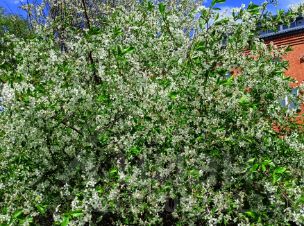 облепиха, клубника, жимолость 2 сорта, малина. Есть цветы однолетние и многолетние.