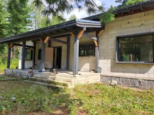 Продается 1-этажный дом в лесу в оптимальных размерах (128 кв.м), с высокими потолками (3.3 м) и большими окнами.