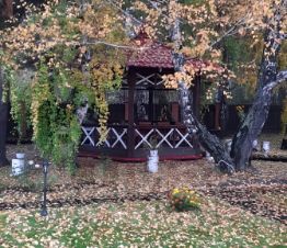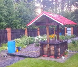 Дополнительные удобства включают дровяник, барбекю-площадку, уличный туалет и ухоженную территорию с цветами, плодовыми деревьями и насаждениями. Для активного отдыха есть небольшая спортивная площадка, гамак-качеля, теплица и питьевой колодец.