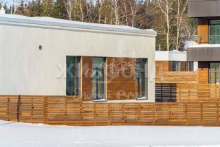 Архитектура дома гармонично вписывается в окружающую природу благодаря использованию кирпича, дерева и стекла. Просторные помещения с высокими потолками и большими окнами создают ощущение света и свободы. Умная планировка включает в себя огромную мастер-спальню (30 кв.м.) с прекрасным видом на лес, светлую ванную комнату с выходом на террасу, вторую спальню и просторную гостиную-столовую, а также кухню с видом на озеро идеальное место для семейных ужинов.