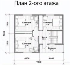 На втором этаже -3 комнаты, выход на балкон.