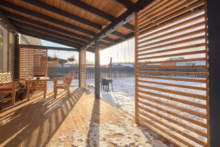 Панорамные окна в гостиной, терраса на заднем дворе (18 кв.м.).