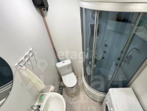 унитаз, установлена душевая кабина, раковина, зеркало, стены и потолок из ПВХ панелей, уложен линолеум, установлена современная межкомнатная дверь, аудио