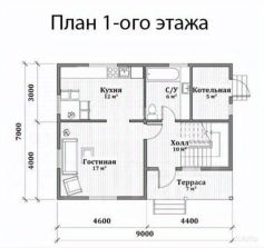 Параметры: На первом этаже - гостиная, полноценная кухня, котельная, санузел