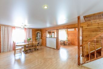Продается отличный дом из качественного клееного бруса, площадь 240 м2 (цокольный этаж кирпич, два этажа из бруса) с земельным участком 13 соток.
