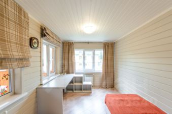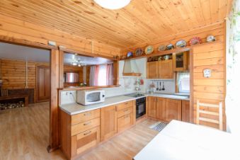Деревянный дом экологичен, в нем легко дышится, тепло зимой, комфортно летом. В доме установлено 2 кондиционера. Дом расположен в замечательном месте, за забором красивый лес, где можно гулять, бегать, кататься на велосипедах, ходить за грибами и просто получать удовольствие от тишины и свежего лесного воздуха. В сторону леса соседей нет, поэтому из дома красивый вид прямо на лес (тишина и пение птиц по утрам).