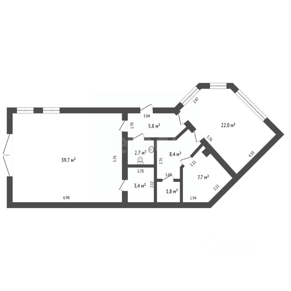 - Санузел с душевой кабиной