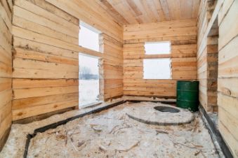 Потолок утеплен в 4 слоя, произведен монтаж электропроводки, установлены пятикамерные окна Astron, качественная входная дверь, установлены маяки под стяжку пола.