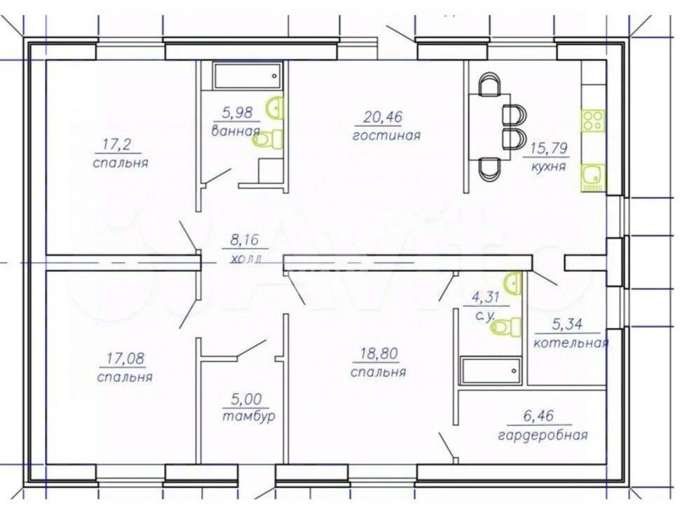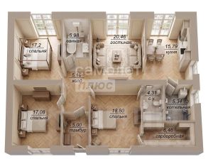 - Гостиная-кухня + 3 спальни + санузел + котельная + большая прихожая и коридор. Все комнаты изолированы друг от друга.