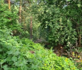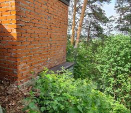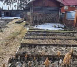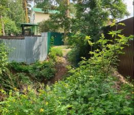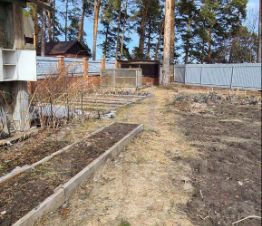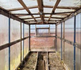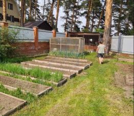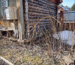 На придомовой территории участка расположены: дровяник с дровами, туалет дворовой, два небольших подсобных помещения, маленькая теплица. Насаждения: 2 вишни плодоносящие, красная смородина, молодые вишни 10 штук, начинающих плодоносить, рябина черноплодная, ирга плодоносящая, рябина красноплодная.