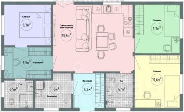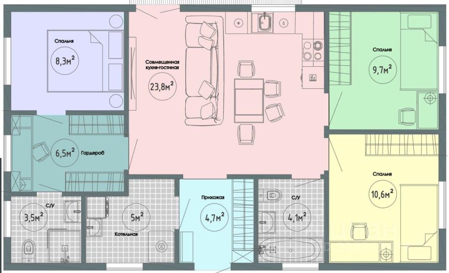 * Планировка: Кухня-гостиная, 2 изолированные спальни.