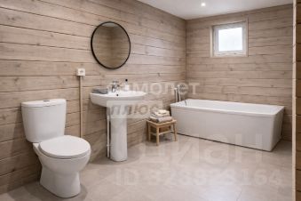 Отделка под ключ: теплый пол с кафелем по всему этажу, на втором этаже - радиаторы, везде натяжные потолки, металлическая лестница, ванная, унитаз, раковина, разведенная электрика, септик.