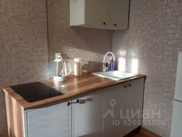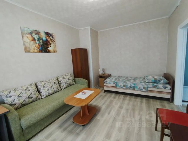 На кухне имеется раковина, мебель, холодильник, стиральная машина, микроволновая печь, чайник, электрическая плитка ( 1 комфорка), посуда. В комнате два спальных места: диван (не раскладывается) и односпальная кровать, два плательных шкафа для одежды, две тумбы, телевизор, письменный и журнальный стол.