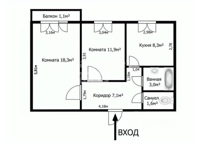 От года, комм. платежи включены (без счётчиков), без комиссии, залог 35 000 ₽