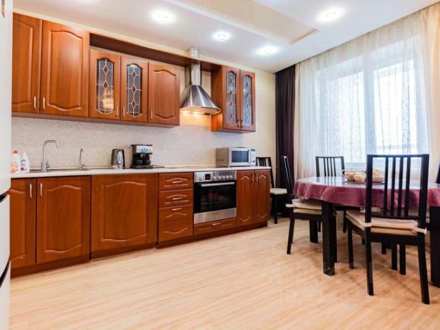 Апартаменты находятся на 10 этаже, с красивым видом на город. Рассчитаны на размещение не более четырех человек. Современный ремонт и оснащение всей бытовой техникой делают данный объект комфортным для проживания как на короткий, так и на длительный срок.